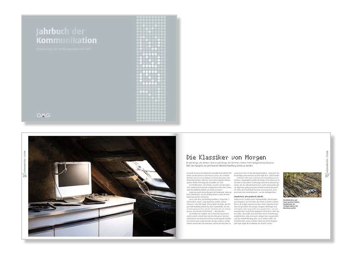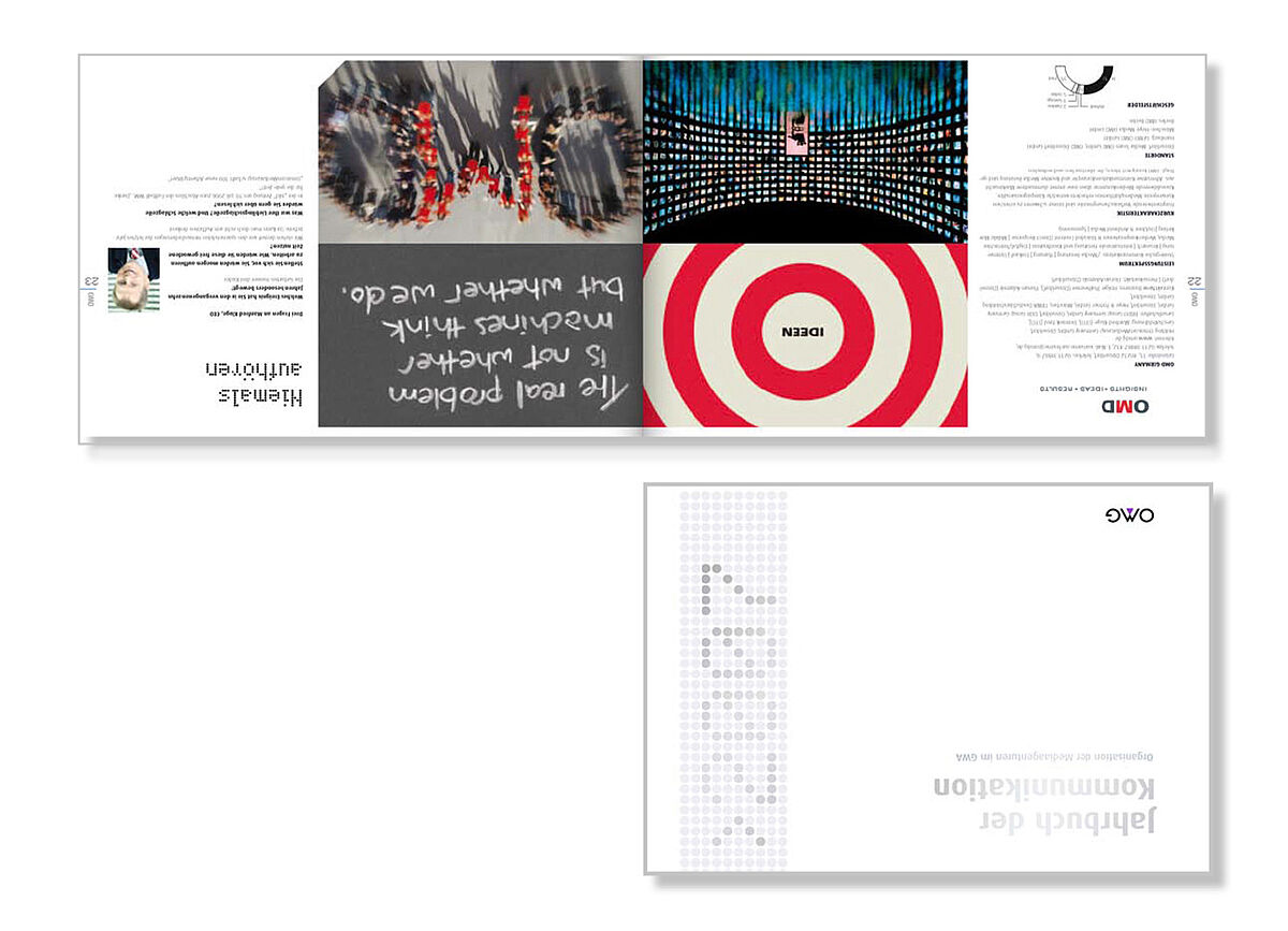 Information über die Arbeit des OMG, journalistischer Essayteil mit Branchentrends, Reportagen und Hintergrundstories, Agenturportraits der Mitgliedsagenturen
